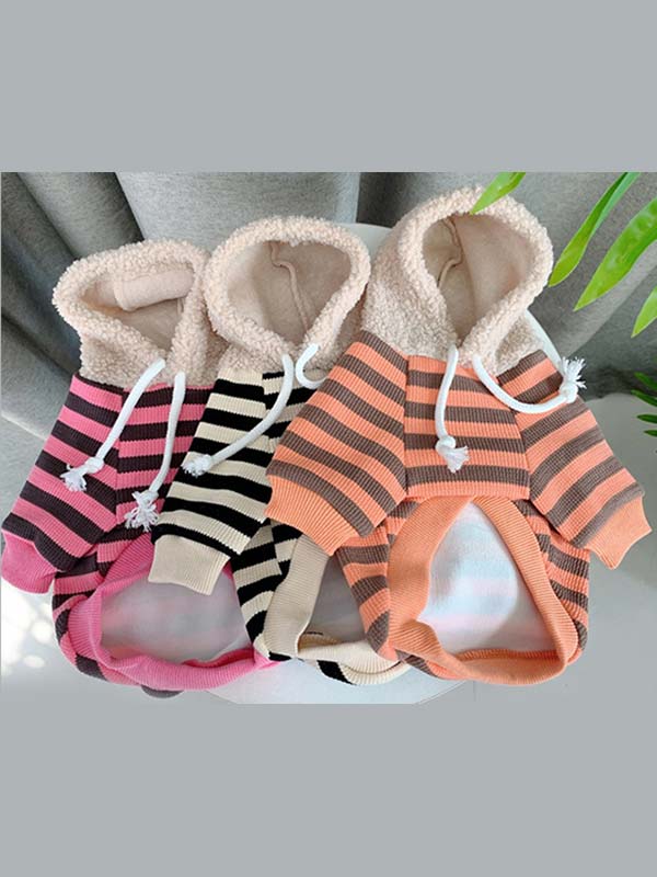 Pet Factory Wholesale Dog Clothes Striped Rabbit Lambskin Hoodie