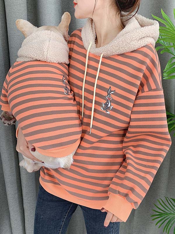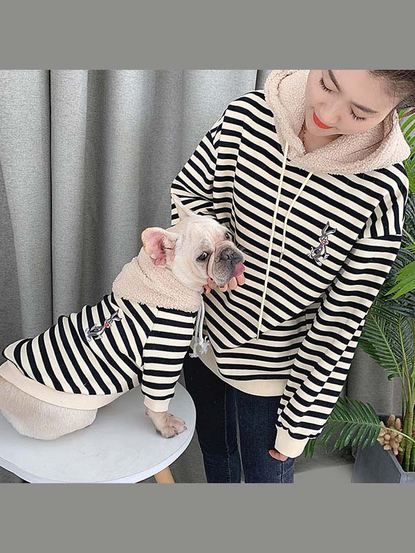 Product Name | Striped Embroidered Rabbit Lambskin Hoodie Dog Clothes and Owner Matching Clothes |