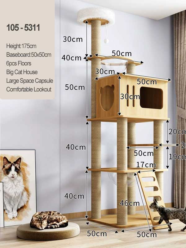 Cat Tree Wood 170CM 66.98 IN MDF Board with 6.5cm Pillar – Bulk Custom Orders