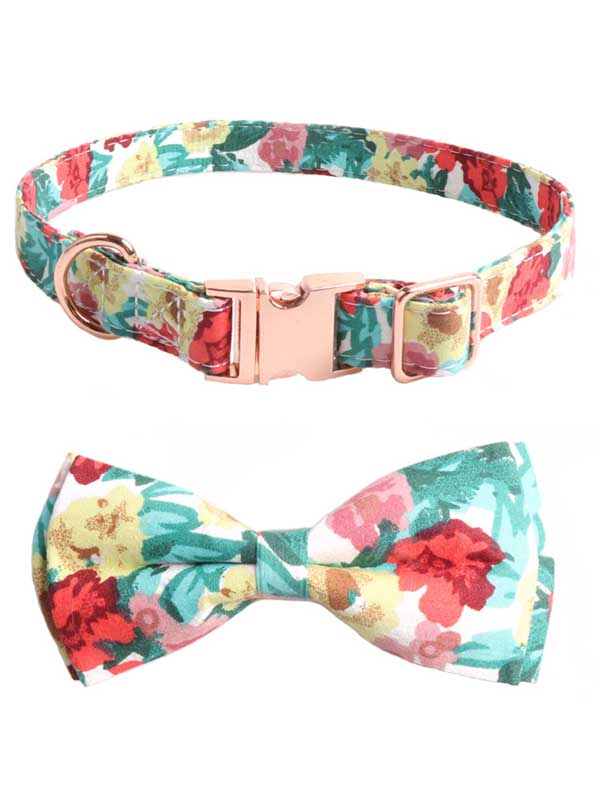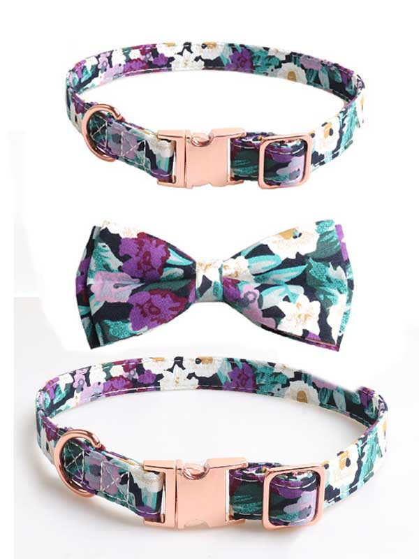 Wholeasle Adjustable Dog Collar Polyester Ribbon Cat Collar Rose Gold Bow Collar 06-0594