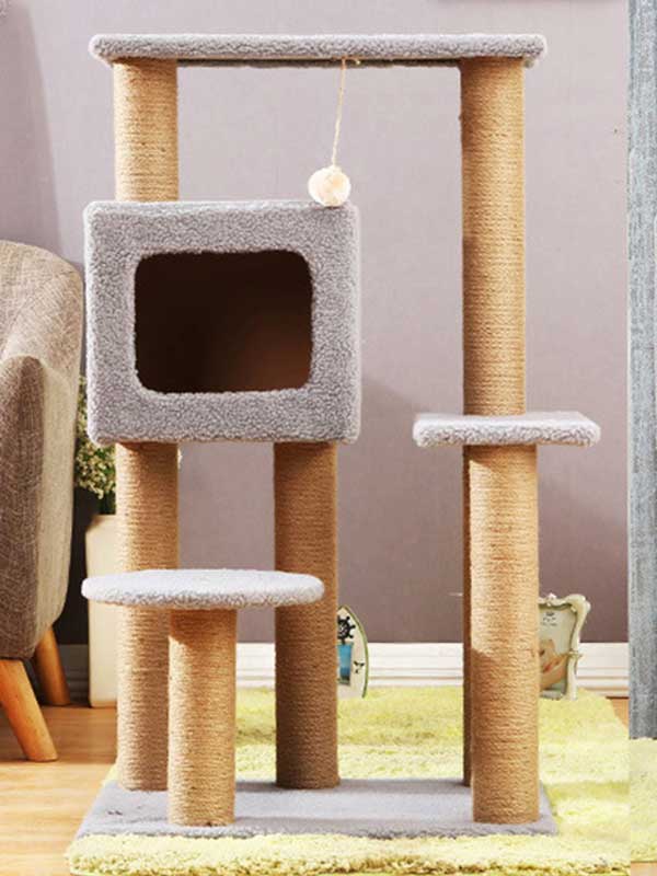 Material:Paper, SISAL, Wood, Cat Tree Gray Pet Toys Big Cat Condo, Sisal