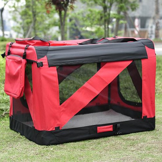 Foldable Large Dog Travel Bag 600D Oxford Cloth Outdoor Pet Carrier Bag in Red