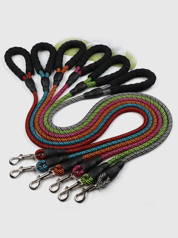 Wholesale cross-border pet dog leash nylon round rope dog chain multi-color striped dog leash medium and large dog outdoor walking leash 109-237032