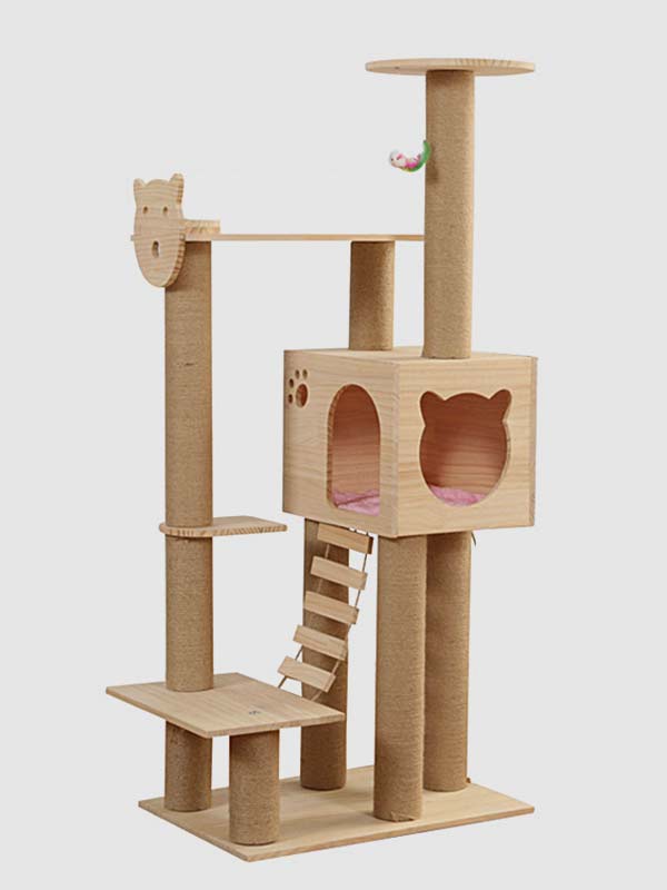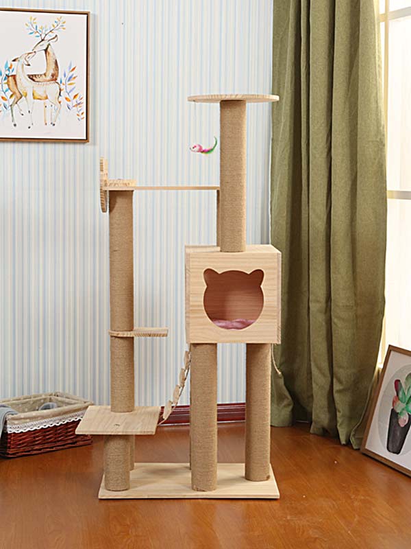 Wholesale cat climbing tower pine hemp rope column ladder cat house cat toy three platform 06-1164 FAQ:
