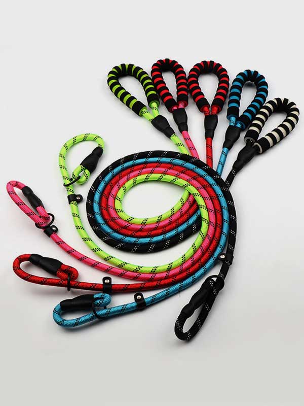 Wholesale color handle leash Nylon reflective dog leash pet training leather leash walking dog leash leash dog chain leash leash 109-237005 – FAQ:
